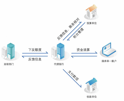 2财政部门资金支付:代理银行接收到财政部门支付申请后为财政部门办理对外支付。
